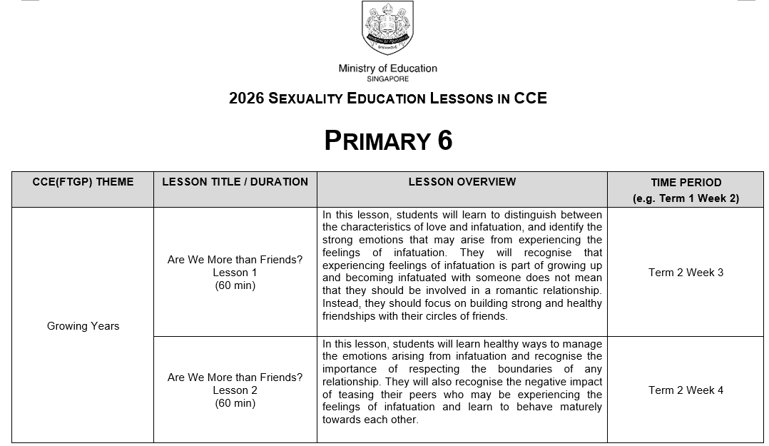 You may click here for more information on MOE Sexuality Education.